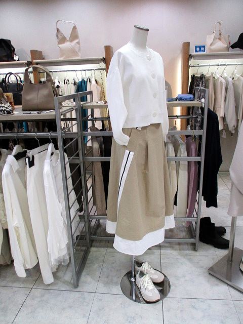 大人かわいいシンプルカーデにスポーティなスカートをセット