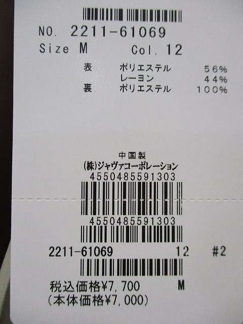 裏地あり ウエスト後ゴム仕様 左脇ファスナー