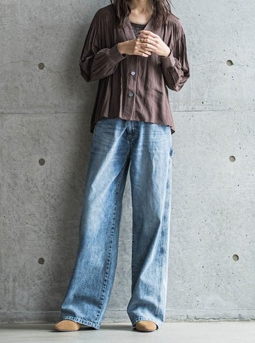 程よくゆる目のシルエットを、サイドの切替え配色で自然なカーブに見せたおすすめデニムです。