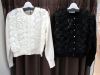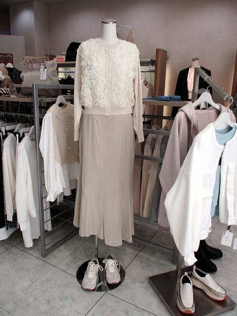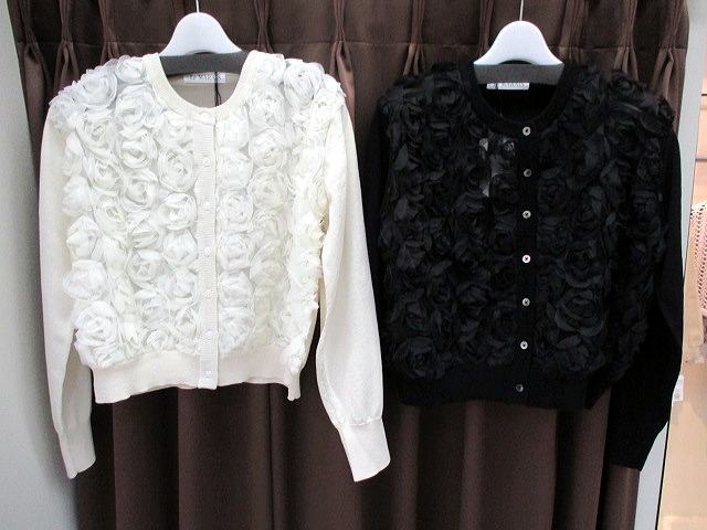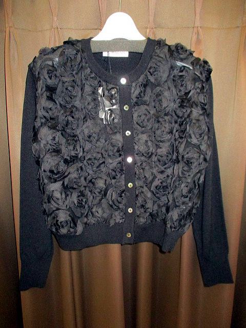 少し短めのベーシックな丸首ニットカーデの前面に、サークルカットしたチュールを貼り付けた存在感のあるカーディガンは着るだけで華やかな印象に。