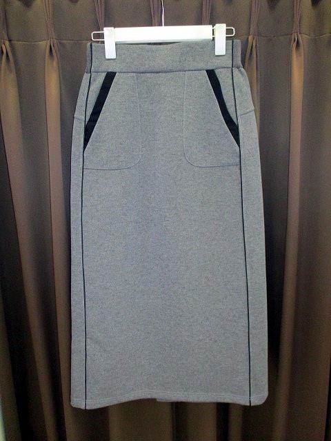 サイドのパイピングとポケットのライン使いがシャープな印象のタイトスカート。