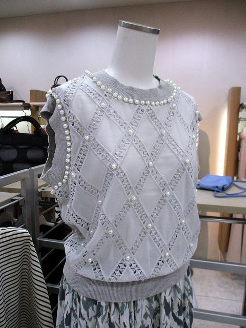 ダイヤ柄レース×パールニット