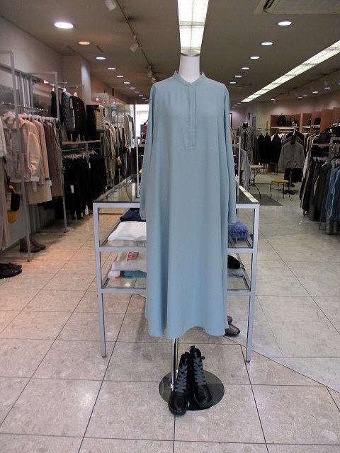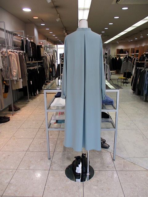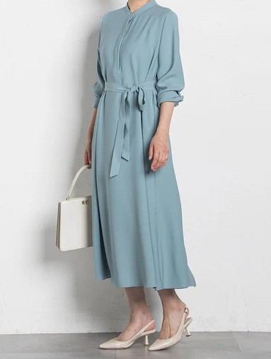 すっきりしたセットインショルダーのきれい目ワンピース。