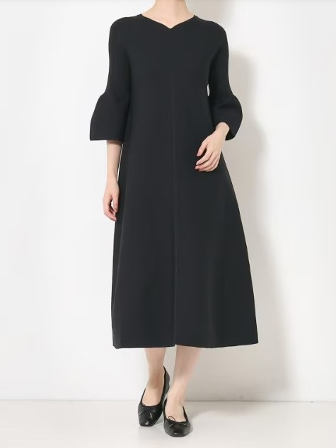 ポリエステル100%の糸を使用し、継ぎ目のないホールガーメント製法で編み上げられたワンピースは布帛のような風合い。きちんと感があり、フォーマルにも使えます。
