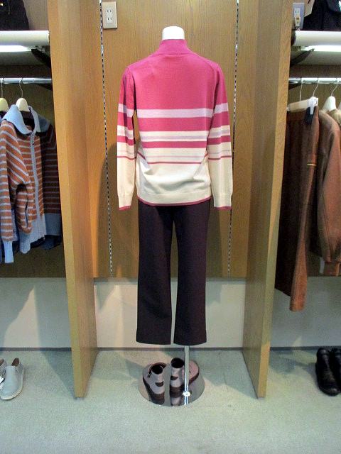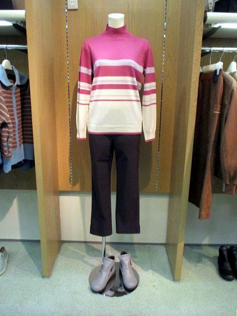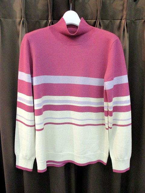 コルディアのオリジナル糸スーパーマイフィルを使用した程よい分量感のボーダー柄ニット。