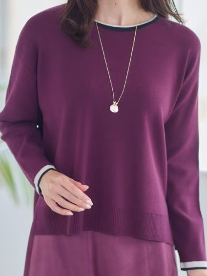 滑らかできれいな目面のニットは、衿と袖口のラインがポイント。