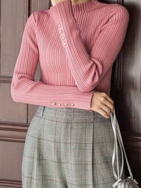 高すぎないハイネックと袖口のボタンがポイ