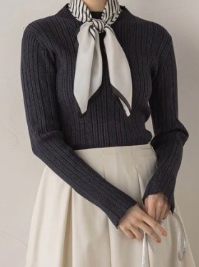 袖ボタンランダムリブニット