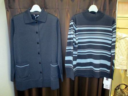 カーディガン サイズ40は、ブルー(店頭はSOLD OUT)とネイビー。