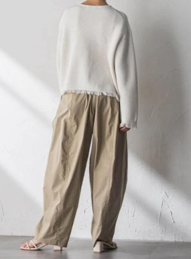 抜け感を演出するドロップショルダーのゆったり目デザインがトレンドです。