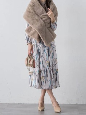 ワンピースはファーベスト、シャギーニットベスト合わせでこの秋の人気アイテムになっています。