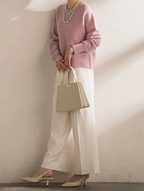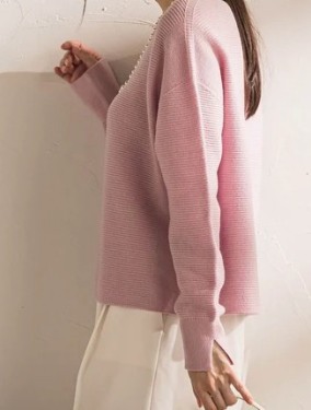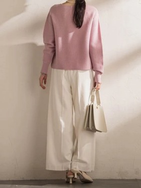 ロートレアモン 継ぎ目のないホールガーメント製法によるニットはストレスのない着心地と美しいシルエットが特徴。新春を意識したピンクもおすすめです。