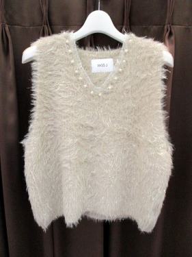 ミスJ、クチュームは全開入荷分が完売したシャギーニットベストの色違い(アイボリー・ゴールド)が入荷しました。