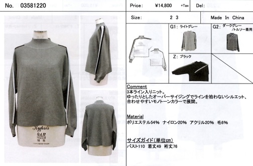 週明けに各メーカーに在庫確認して冬物を追加オーダーする予定です。